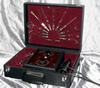 This stunning Fluvita has been lovingly restored with a rich cotton velvet interior and a lovely hard wearing faux leather case covering - often known as a BARONIAL - due to the parabolic arrangement of the electrodes in the case. The case clips and case handle are also new and are sympathetic to the original in this lovely circular (parabolic) design. The 1950s control unit has a brown bakelite fascia with the following controls